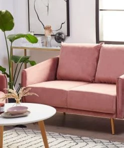 Beliani Canapés Petits Prix Canapé 2 Places 2 Personnes En Velours Rose