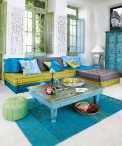 Maisons Du Monde Canapés D’angle Banquette D’angle Modulable 6 Places En Coton Bleue Et Verte