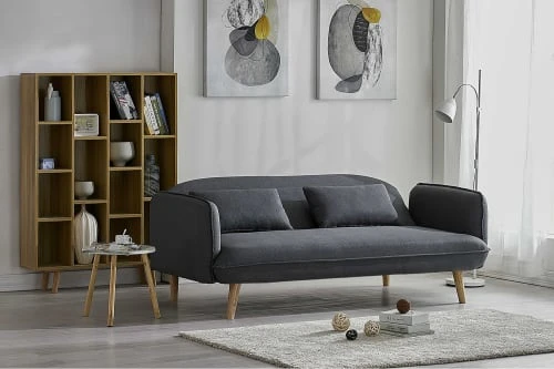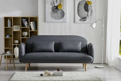 Pour profiter de votre salon la journée et pour bercer vos soirées, ce canapé convertible 3 places s’intégrera parfaitement à votre intérieur. Ses belles courbes font de lui un canapé moderne et tendance. Son revêtement tissu et ses pieds obliques en bois lui donnent une allure scandinave qui ravivera la déco de votre salon !