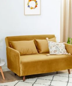 Drawer Canapés Petits Prix Canapé Convertible 2 Places En Velours Jaune Moutarde