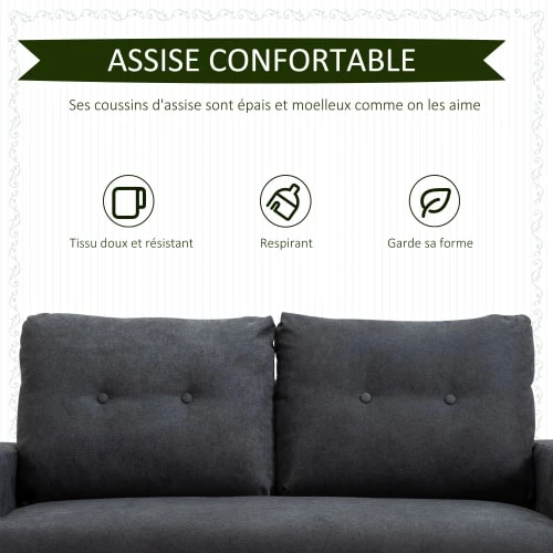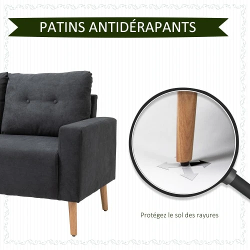 – Lignes épurées, pieds effilés, coussins dossier avec 2 boutons pour une parfaite intégration dans l’espace intérieur de votre choix : salon, bureau, chambre, salle de jeu, etc…