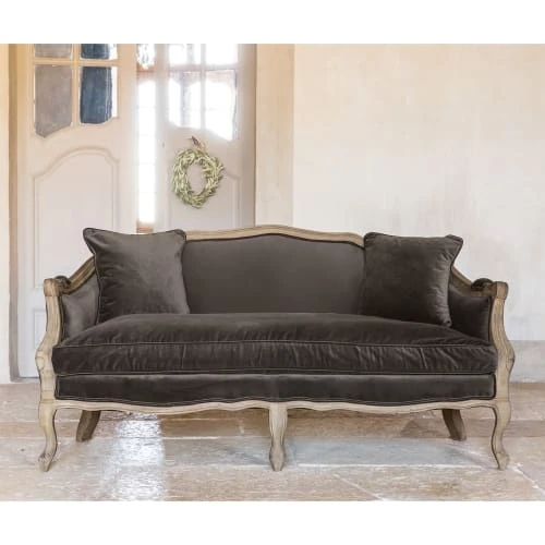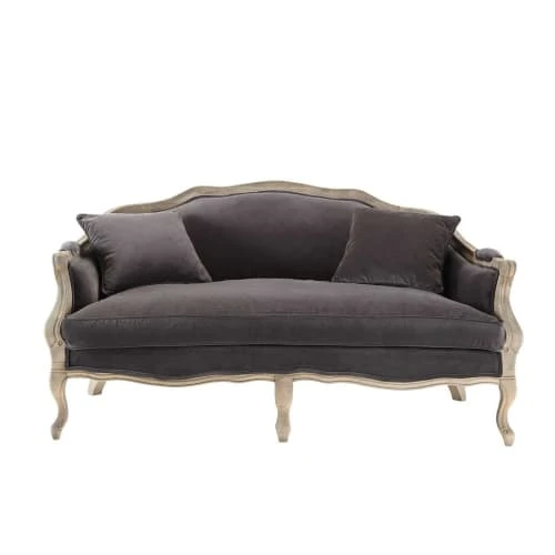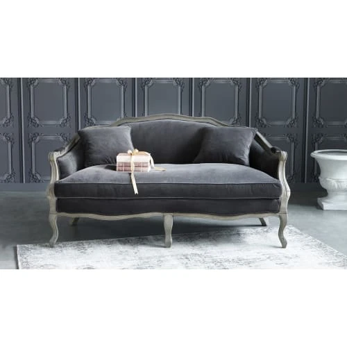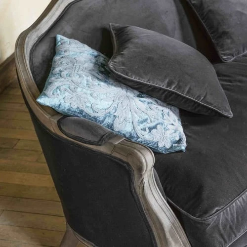 Revêtement : velours 100% coton, coloris anthracite, coussins déhoussables