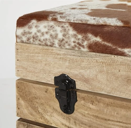 Optez pour un mélange de matériaux travaillés avec la banquette coffre 2 places en manguier et peau de vache DENVER. Son look aux influences des Amériques séduira les amateurs d’authenticité. Son esthétisme s’associe à un côté pratique grâce à son coffre situé sous son assise. Vous pourrez y ranger toutes les petites affaires qui n’ont pas encore trouvé d’emplacement dans votre intérieur. Chaque banquette coffre est unique, pour une déco qui vous ressemble.