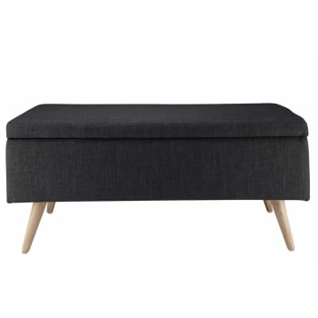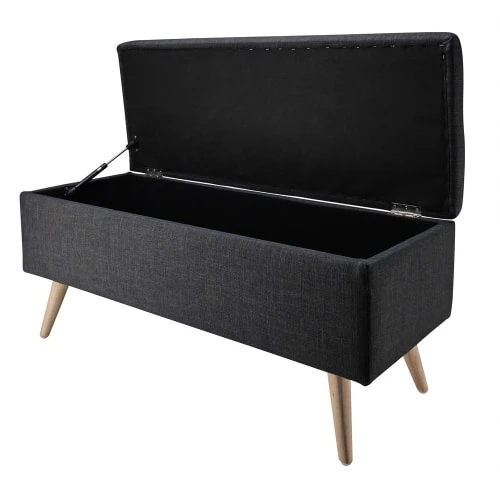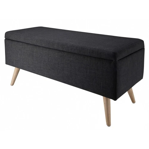 Avec son design scandinave et ingénieux, cette banquette coffre gris anthracite OLIVER dispose de sérieux atouts pour rejoindre les plus petits espaces. Cette banquette coffre oscille entre deux styles : rétro grâce ses pieds obliques, et moderne pour son tissu gris foncé chiné. Ouvrez cette banquette design de la même manière qu’un coffre de rangement afin d’y stocker vos nombreuses affaires. Créez un coin lecture en glissant cette banquette sous une fenêtre.