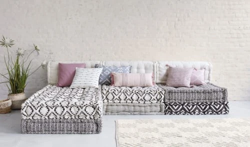 Pour un salon qui ne ressemble qu’à vous, craquez pour la gamme CHENNAI qui offre un harmonieux mélange entre les motifs ethniques et les motifs graphiques. Grâce à ses assises modulables, cette collection s’adaptera rapidement à la superficie et l’agencement de votre pièce de vie. Que ça soit en famille ou entre amis, son confort optimal vous offrira des moments conviviaux et cosy que vos convives ne sont pas prêts d’oublier. Embarquez pour un voyage exotique et laissez-vous porter !