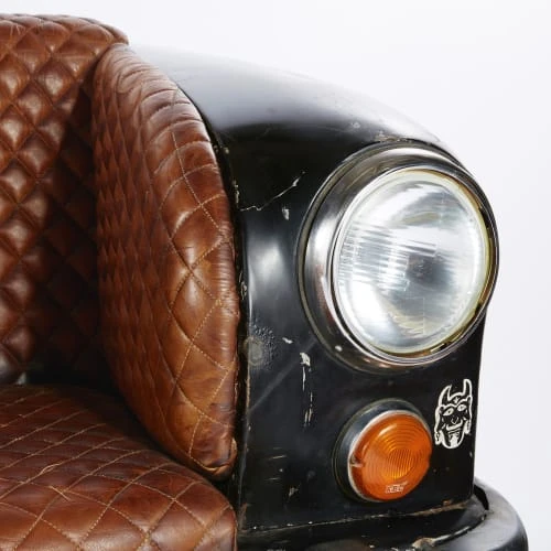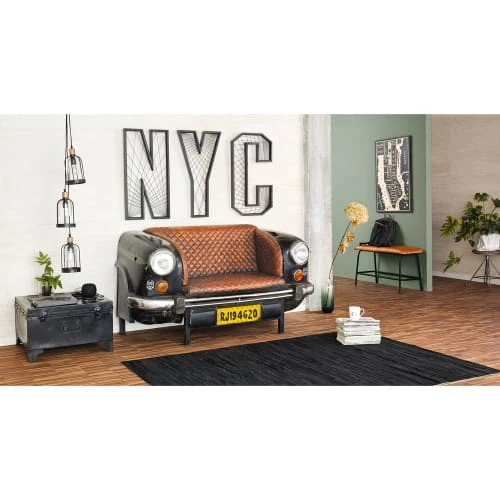 Installée dans un intérieur façon loft new-yorkais, cette banquette indus en cuir marron AMBASSADOR fera son petit effet ! Son originalité ? Sa structure en métal noir provenant d’une vraie carrosserie, qui fait de cette banquette voiture un mobilier unique et étonnant de réalisme. Pour plus de confort, son assise en cuir de vache marron affiche un effet matelassé des plus élégants.