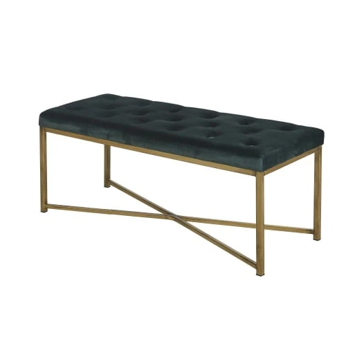 Vous appréciez vous étendre tranquillement sur une banquette ? Ne rêvez plus, et optez pour la banquette verte et dorée MOUNIMA ! Son aspect de velours vous happera pour des siestes ou des discussions reposantes.