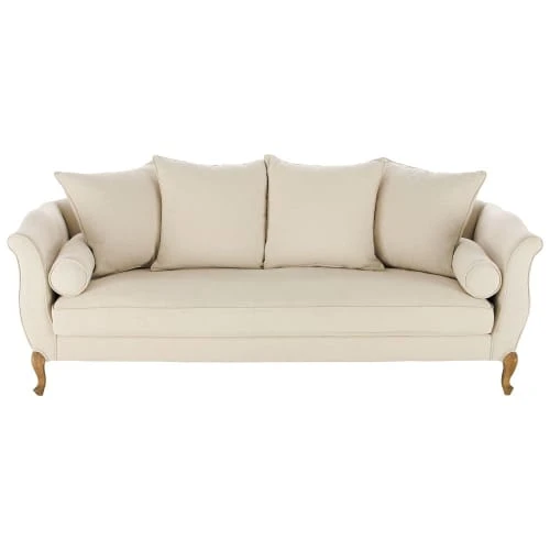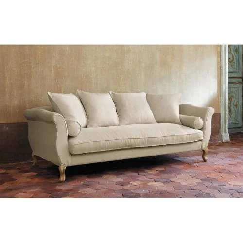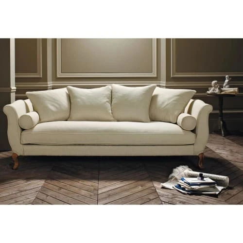 Revêtu de tissu : 45% lin, 55% coton, coloris lin, coussins déhoussables.
