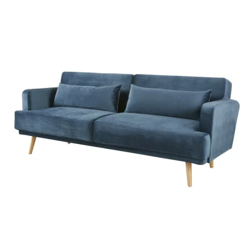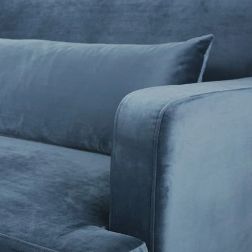 Revêtement : velours 100% polyester, coloris bleu foncé, coussins déhoussables