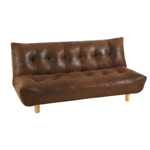 Idéal pour vos soirées cocooning, le canapé clic-clac capitonné 3 places CLOUD est une véritable invitation à la détente. En microsuède marron, il est habillé de capitons, clin d’œil au style rétro chic. Résultat ? Une allure moelleuse et élégante qui en fera la pièce maîtresse de votre salon. Pratique, ce canapé convertible vous offrira également un lit d’appoint quand vous recevrez vos amis ou votre famille.