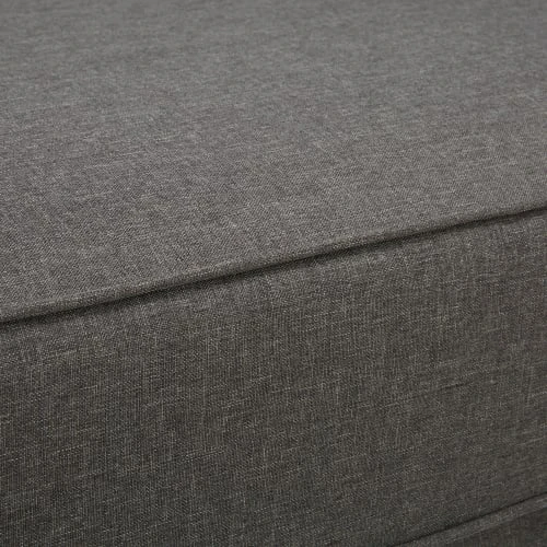 Revêtement : tissu 100% polyester coloris gris, coussins d’accompagnement déhoussables (structure et coussin d’assise non déhoussable)
