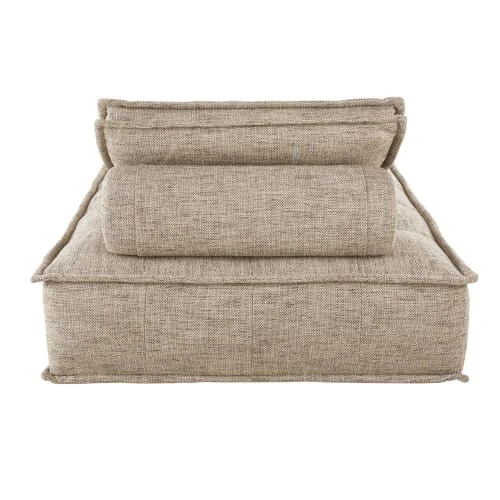 Revêtement : tissu 18% viscose et 82% polyester, coloris marron, coussins d’accompagnement déhoussables