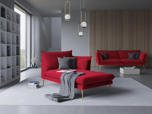 Très confortable pour toute la famille, trouvez la pièce qui correspond le mieux à vos besoins ! Vous découvrirez dans cette collection un canapé d’angle, un canapé 4 places, un canapé 3 places et un canapé 2 places ainsi qu’un fauteuil, une chaise longue et un pouf. Tous ont un design épuré avec de grands coussins confortables et de beaux pieds métalliques fins en diagonale, dorés ou noirs. Leur revêtement en velours ajoute de la chaleur qui sera superbe dans n’importe quel intérieur.