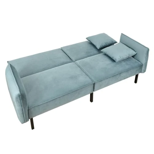 Baita Canapés Petits Prix Canapé Droit Convertible En Velours 3 Places Bleu