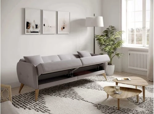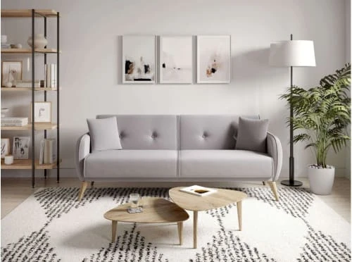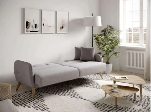 Baita Canapés Petits Prix Canapé Droit Convertible En Velours 3 Places Bleu