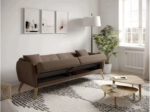 Concept Usine Canapés Petits Prix Banquette Clic Clac 3 Places En Tissu Beige
